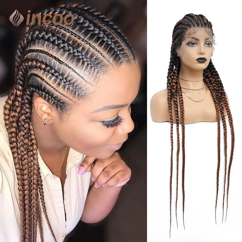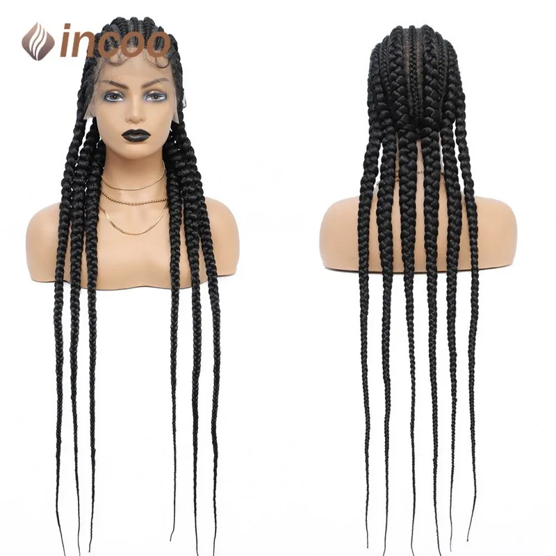 36 Inch Full Lace Box Braided Wigs For Black Women Jumbo Knotless Box Braid Lace Wigs Swiss Lace Cornrow Synthetic Braids Wig