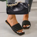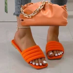 New Flat-bottomed Slippers For Women Summer Plus Size Solid Color Beach Sandals Women Shoes And Fashion Chain Messenger Bag Set