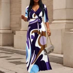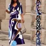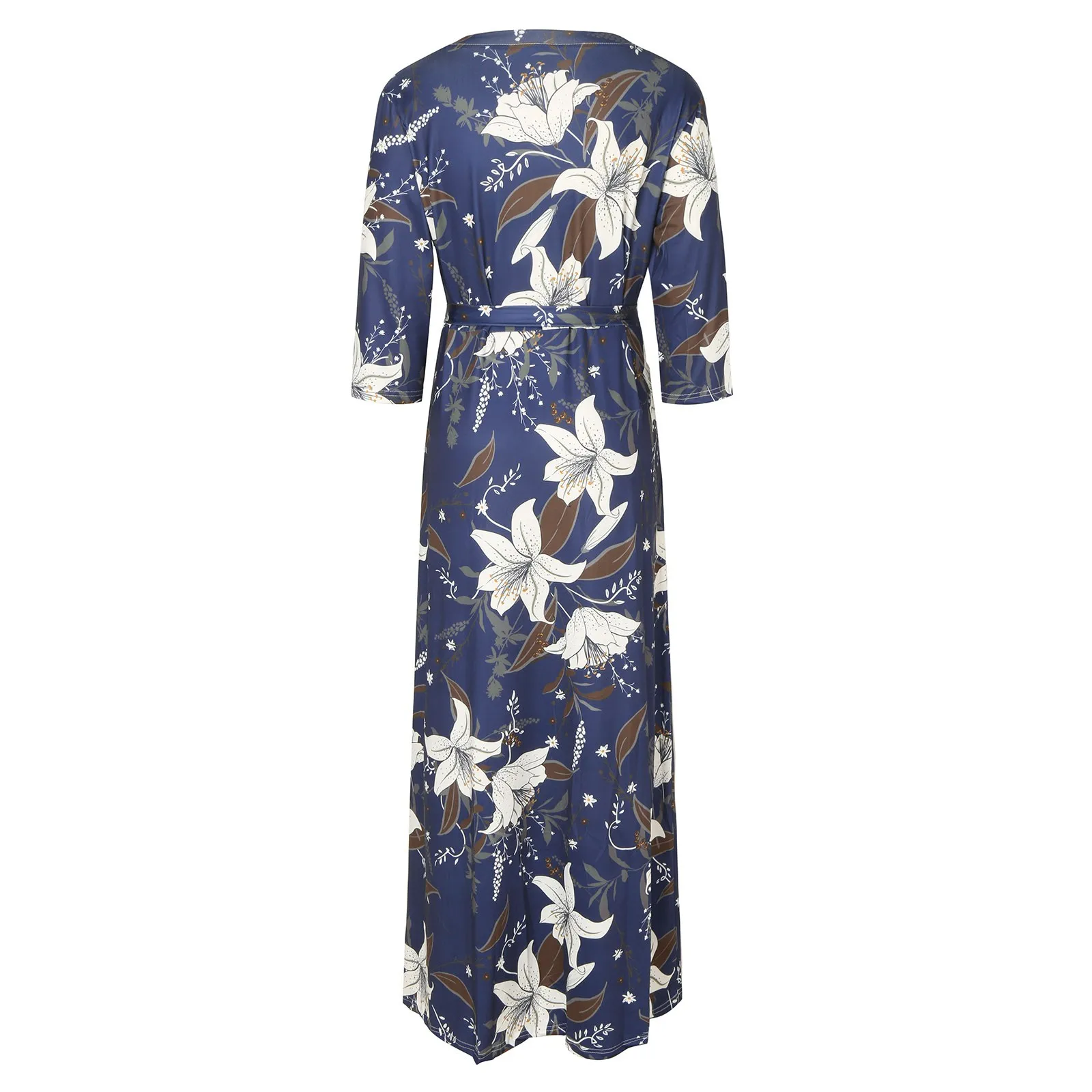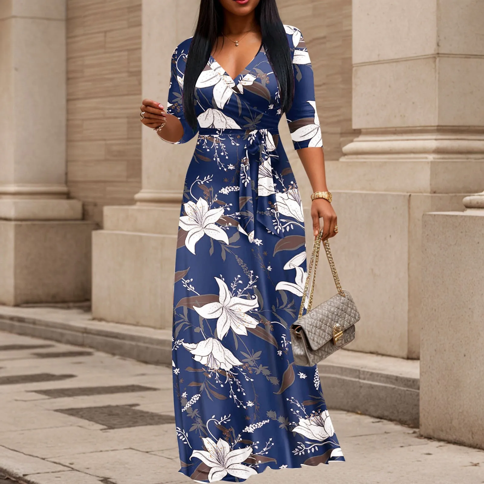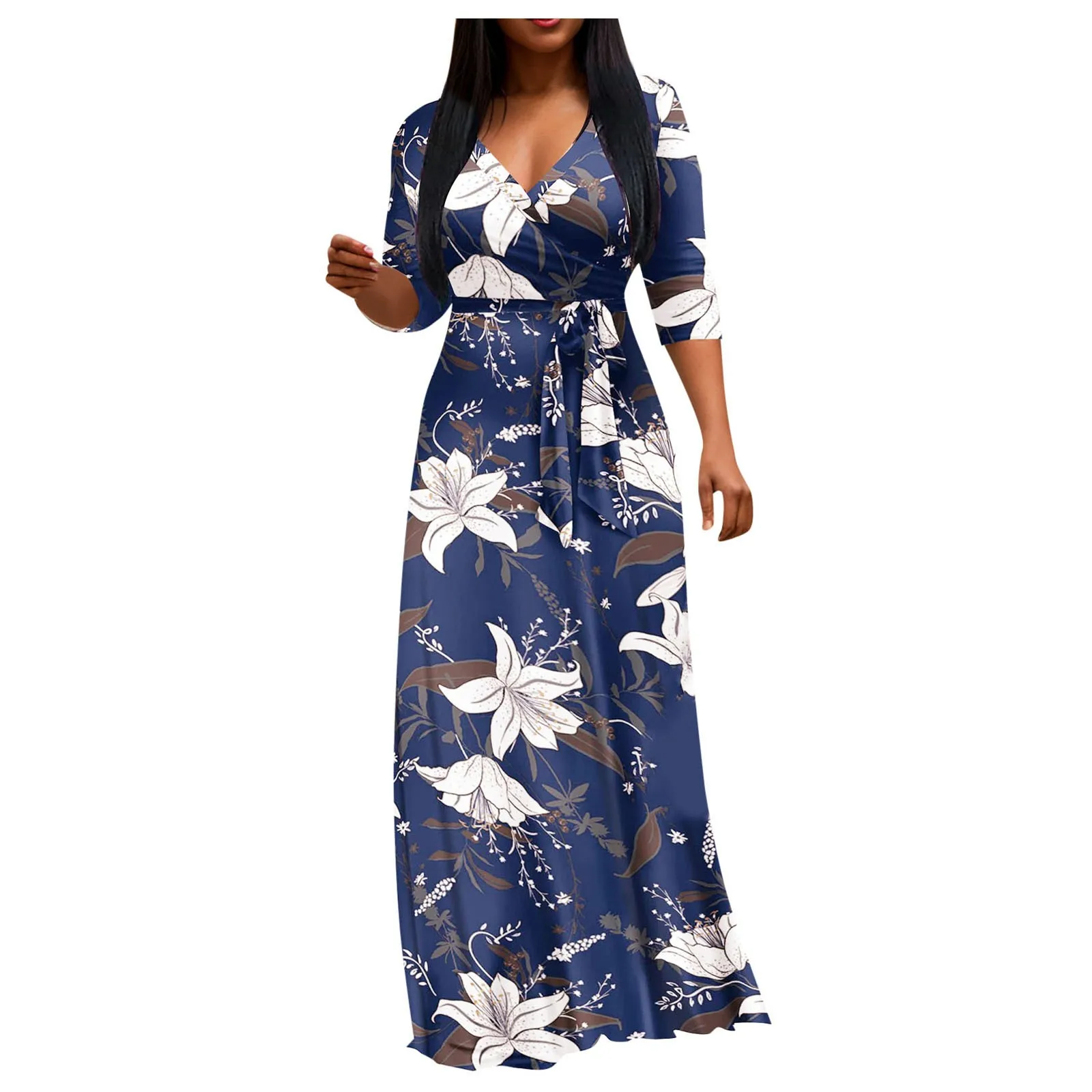 Plus Size Maxi Dress For Women Casual Summer V Neck 3/4 Sleeve