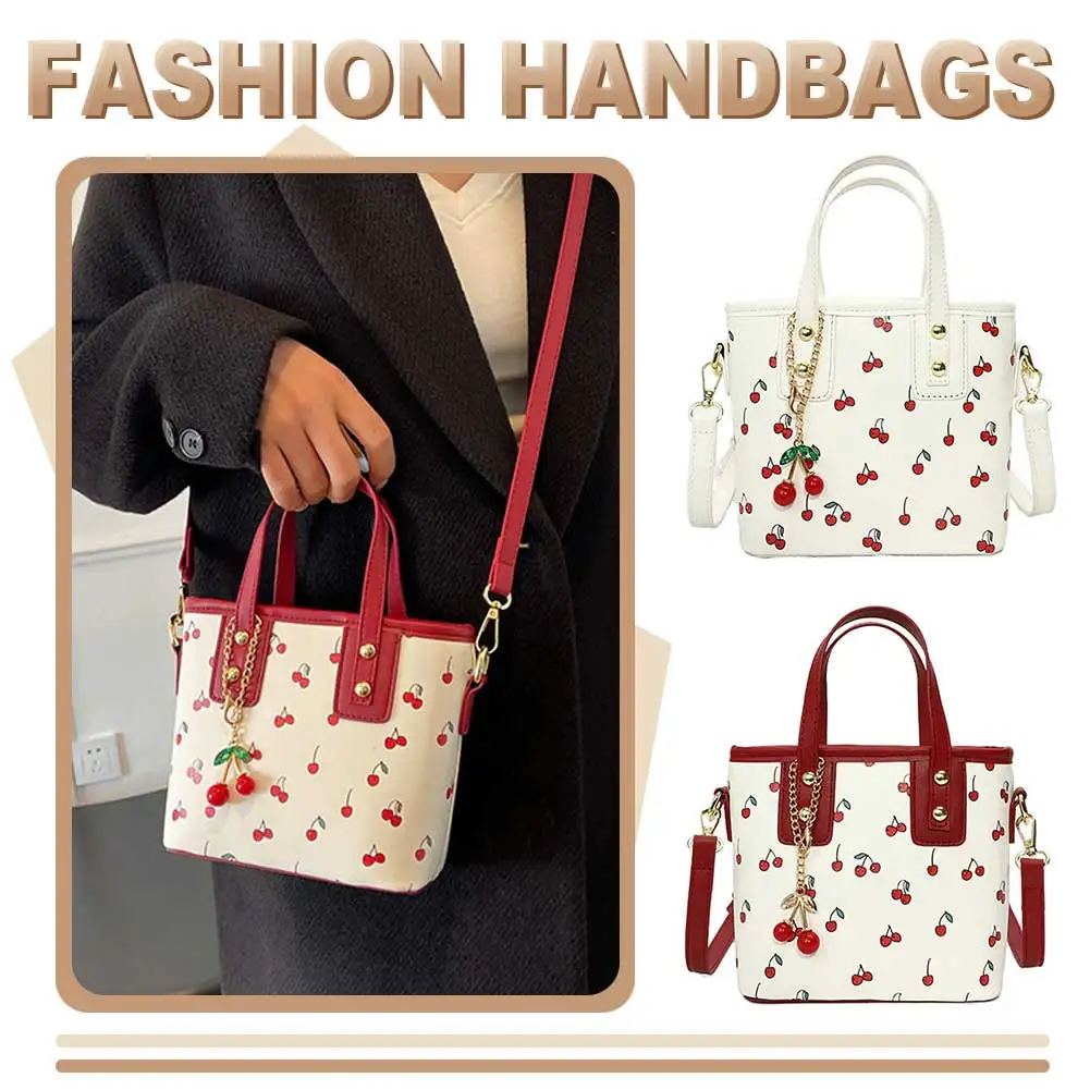 4. Charming Cherry Pattern: Featuring a delightful cherry print and adjustable strap, this stylish crossbody bag can be worn as a shoulder bag or carried as a handbag. Its versatile design effortlessly complements various styles, adding a playful yet elegant touch to your look.
