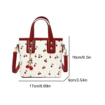 2. Compact Yet Spacious Design: Measuring 170x160x90mm (6.69×6.3×3.54 inches), this PU cherry shoulder bag is perfect for carrying essentials like your phone, keys, wallet, and cosmetics. Its compact size makes it ideal for those who need convenience without sacrificing style.