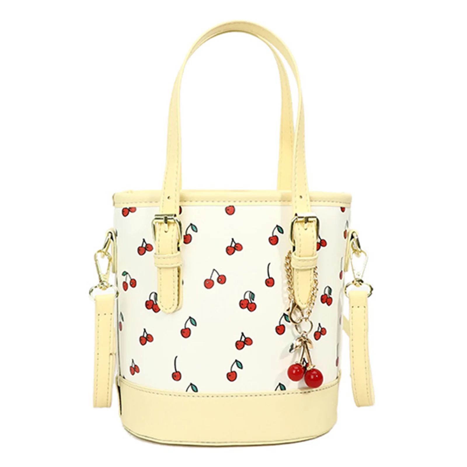 Women PU Cherry Shoulder Bag Adjustable Strap Stylish Crossbody Bag with Cherry Pendant Simple Messenger Bag Casual Satchel Bag